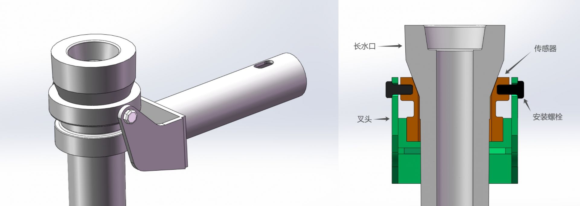 传感器依据现场使用的长水口托架进行一体化设计,安装方式同长水口托架一样,见下图。