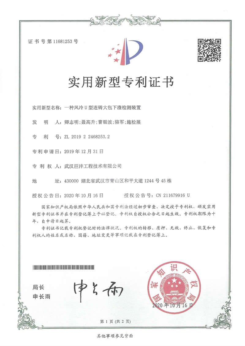 一种风冷U型连铸大包下渣检测装置